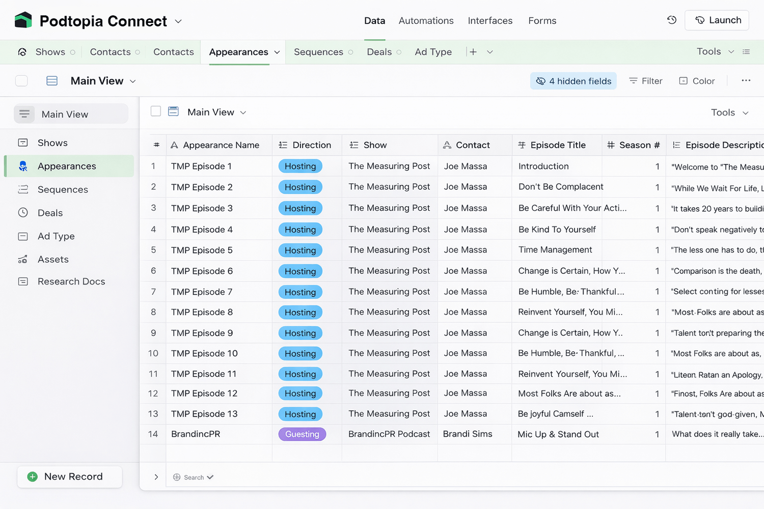 You're juggling spreadsheets that were "temporary" six months ago. You forget to send prep materials. You forget to follow up after episodes go live. Guests fall through the cracks and so do opportunities.